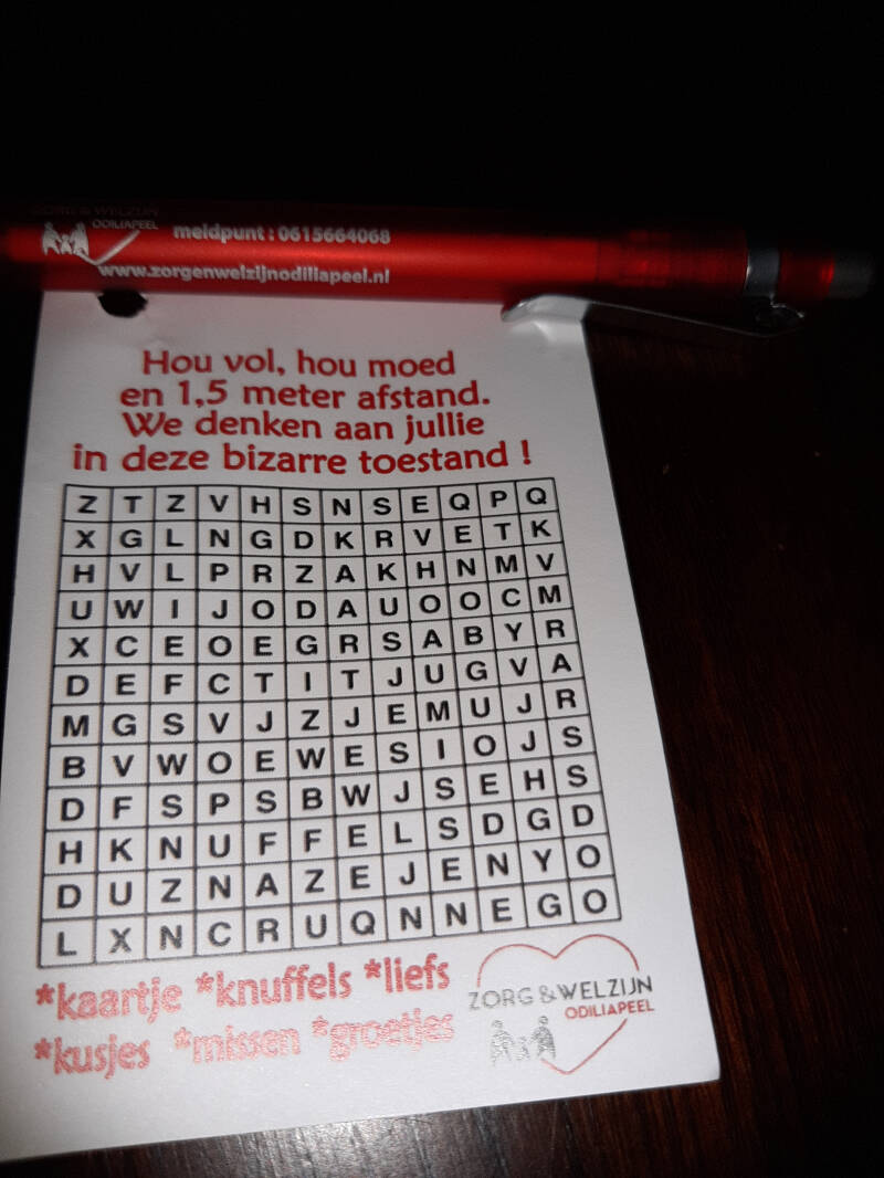 Ondanks Corona blijft Zorg en Welzijn Odiliapeel zich inzetten voor de bewoners van Odiliapeel. Tijdens de coronaperiode blijft Zorg en Welzijn kijken naar mogelijkheden en wat er georganiseerd kan worden na deze bizarre periode.