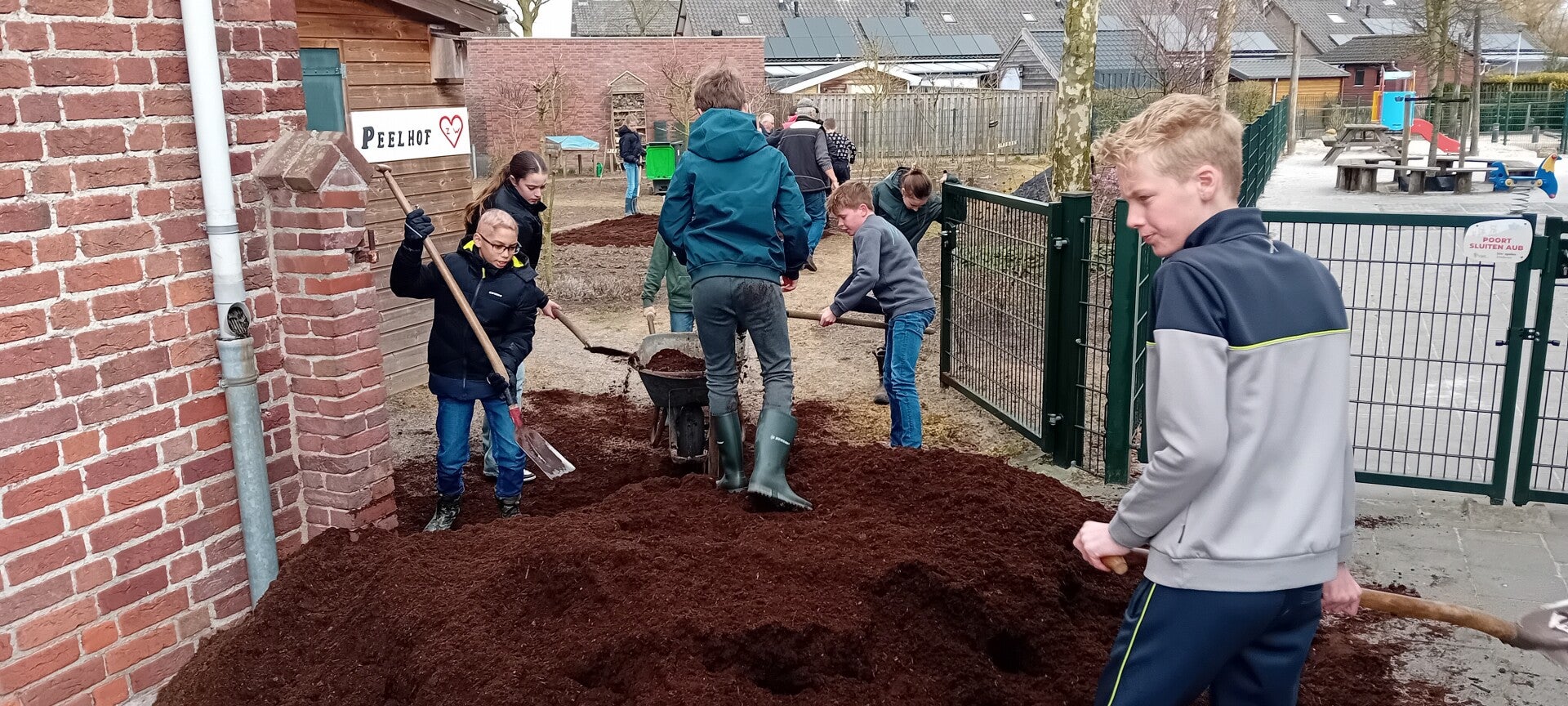 Met dank aan de Gemeente die de compost beschikbaar heeft gesteld, waarvoor dank, kon de Peelhof van een mooie laag compost worden voorzien.