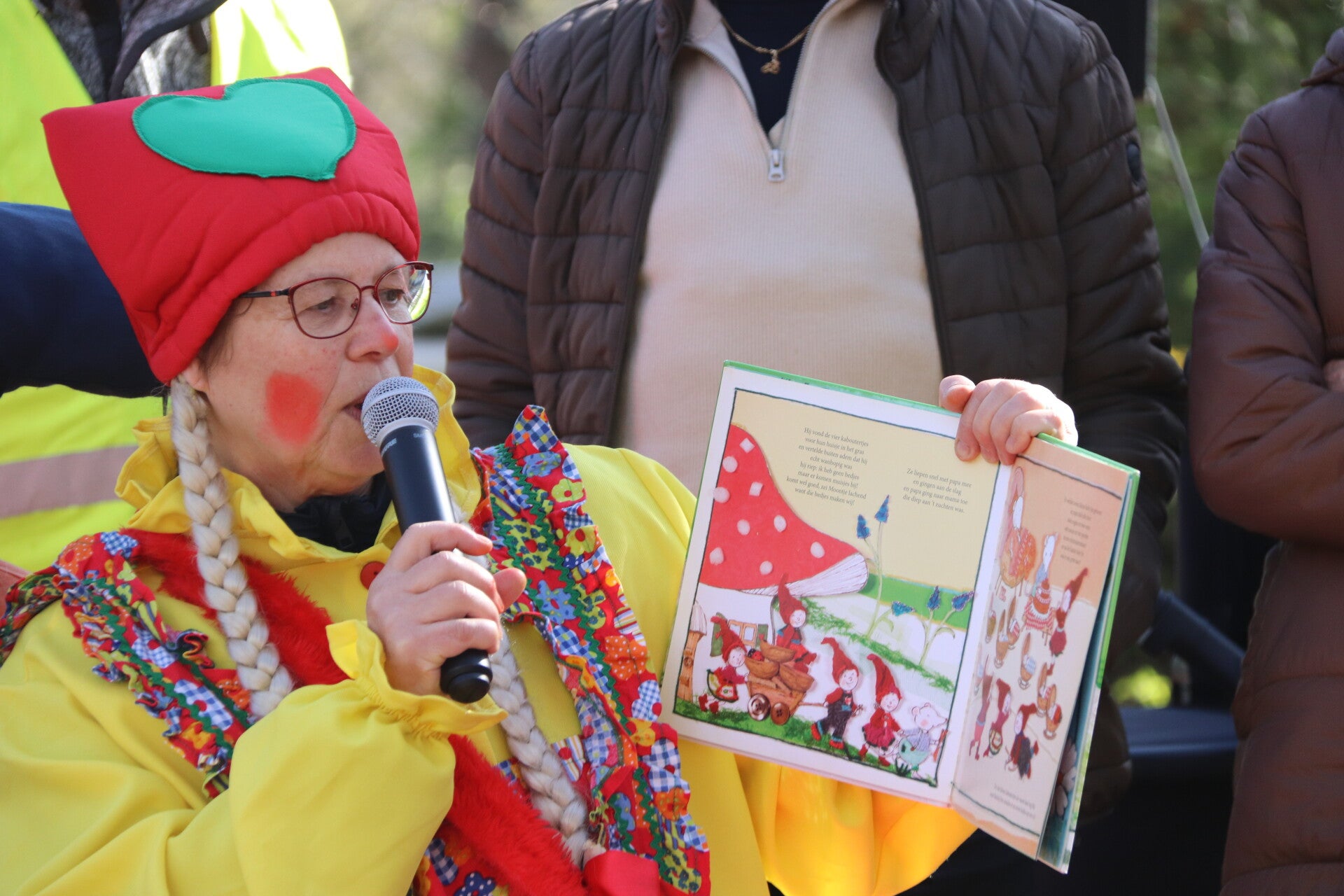 Voor het eerst in drie jaar tijd werd het kabouterpad deze week opgebouwd in de regen, maar gelukkig scheen het zonnetje volop tijdens de opening. Na trotse woorden van initiatiefneemster Elly Janssen, verscheen kabouter Mamatoe samen met haar kaboutervriendjes. Zij las de kinderen een verhaaltje voor, waarna het tijd werd om de kabouters wakker te zingen uit hun winterslaap. ‘Op een grote paddenstoel’ werd luidkeels meegezongen door alle aanwezigen.