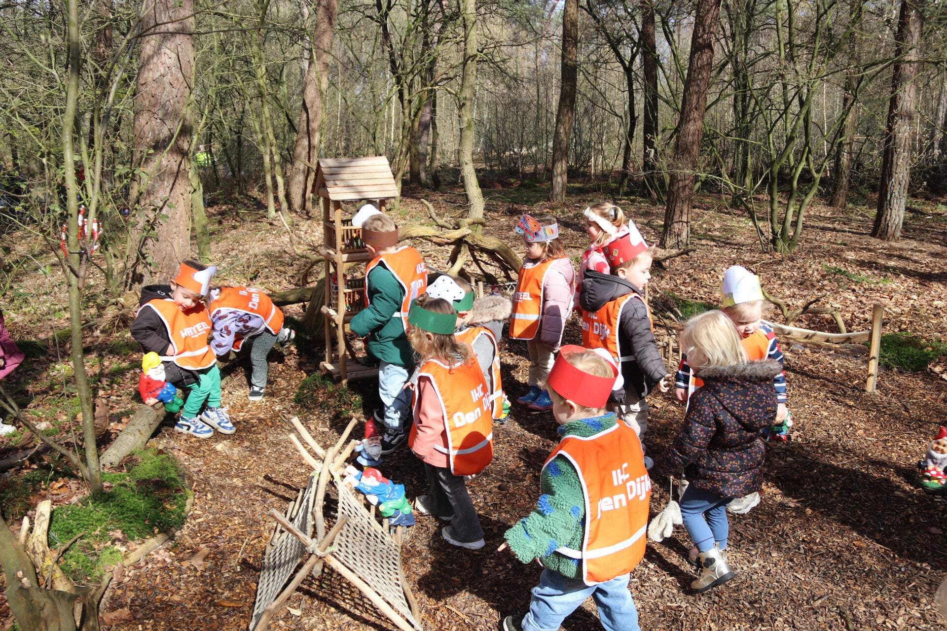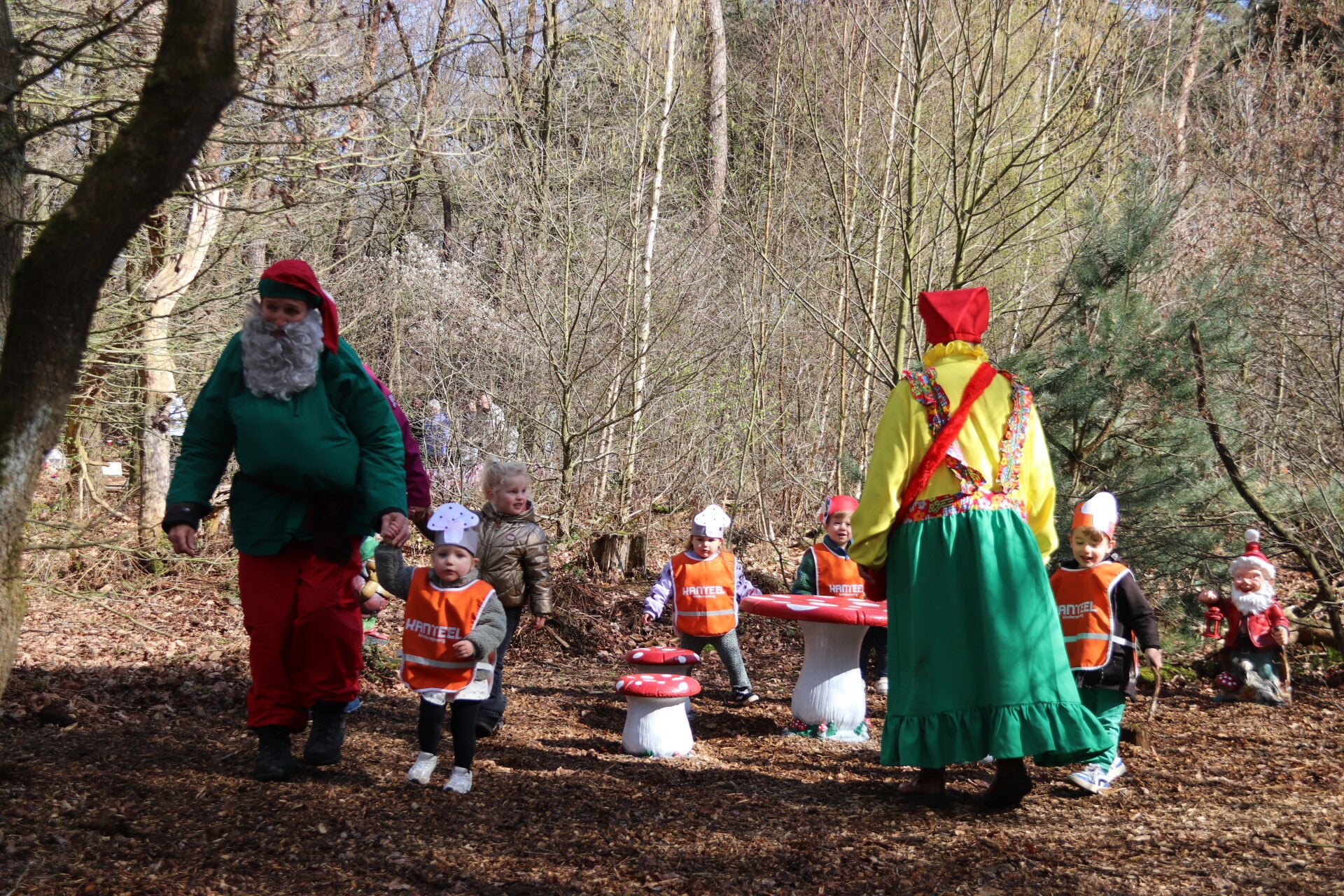 En toen was het tijd om het kabouterpad te gaan bewonderen. Vol enthousiasme betraden de aanwezigen het bos, waar zij verrast werden door allerlei nieuwe elementen. Zo is er dit jaar een mooie kabouterboerderij bijgekomen met dieren en een groentetuin. Ook is er een puzzelblok voor de kindjes. Nieuw is tevens de speurtocht naar kleine kabouters die zich hebben verstopt achter de bomen. Aan het begin van het kabouterpad staat een brievenbus met zoekopdrachten om de kleine kabouters te vinden. Kortom: een gezellig en kleurrijk geheel!