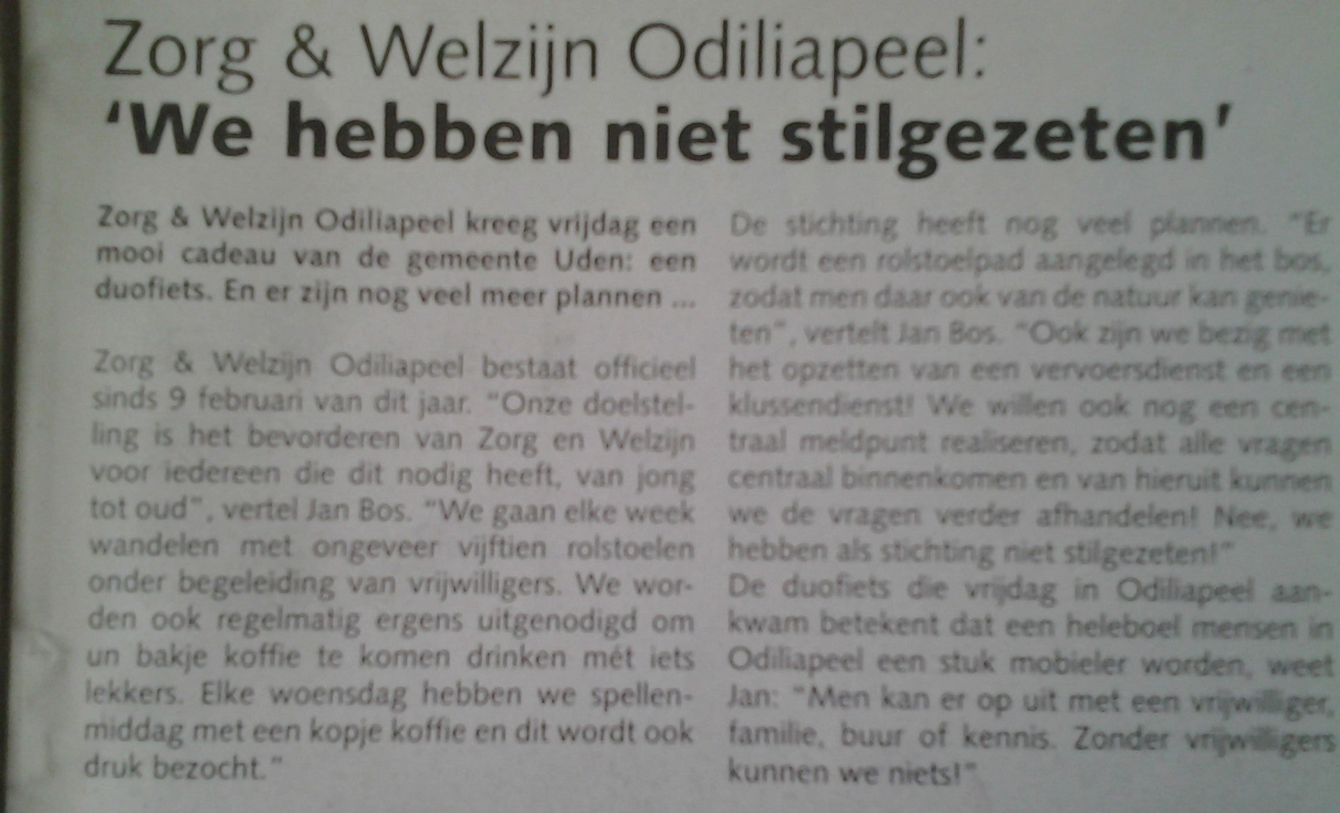 Stichting Samen Odiliapeel, voorheen Zorg & Welzijn Odiliapeel is opgericht op verzoek van de Gemeente Uden, vanwege de veranderingen in de zorg.
